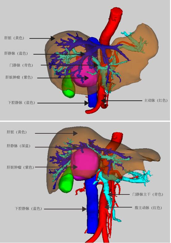 两名患者均是外省慕名而来,其中一例为四川广安的右肝后叶12厘米巨大肝血管瘤患者,一例为江西的肝中叶8厘米伴破裂的巨大肝癌患者。这两例病例的病变不仅生长在传统腹腔镜肝切除的禁区部位,而且都病程长、血运丰富、周围被重要大血管环绕,即使传统开腹切除也容易发生大出血而危及患者生命。刘作金教授利用腹腔镜超声精确定位,通过Glissons蒂半肝阻断结合全肝阻断,肝后下腔静脉前间隙尾叶优先途径为指导,肝后绕肝带悬吊等先进的腔镜下技术有效控制血流,分别成功切除了上述病变。