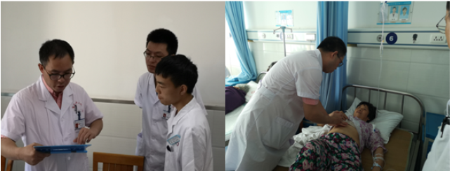 作为重庆市腹腔镜脾脏外科技术领军人,肝胆外科副主任刘作金教授义诊结束后,走进卫生院普外科病房,仔细查看一本本疑难病历,了解患者病情的同时,还逐字逐句地指导医生书写病历。随后,刘主任来到患者病床旁,得知一名患者因农忙想延迟手术时,他关切地嘱咐到:“大姐,您的心情我十分理解,但是农忙过后一定要及时来医院做手术,不然会有生命危险。”