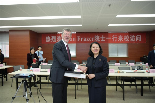 弗雷泽教授表示,他和中国开展过很多合作项目,他发明的宫颈癌预防性疫苗是他和中国科学家周健博士深入合作的产物。在他的研究所中有很多的中国研究者和留学生。他2005年与重医附二院胡丽娜教授认识,2008年董晓静教授在弗雷泽教授研究所中研修一年。弗雷泽教授十分期待和胡丽娜教授、董晓静教授再次合作,并在宫颈癌治疗性疫苗领域与重庆医科大学和重医附二院建立更广泛的合作。