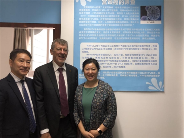 5月15日,宫颈癌疫苗发明者、澳大利亚癌症学会主席、诺贝尔医学奖提名者伊恩·弗雷泽(Ian Frazer)院士到访重庆医科大学及重庆医科大学附属第二医院(下称“重医附二院”),为即将开展的宫颈癌治疗性疫苗I期临床试验项目做调研工作。此次HPV治疗性疫苗I期临床试验项目的筹备视察活动也得到了重庆市相关领导和重庆医科大学的高度重视。