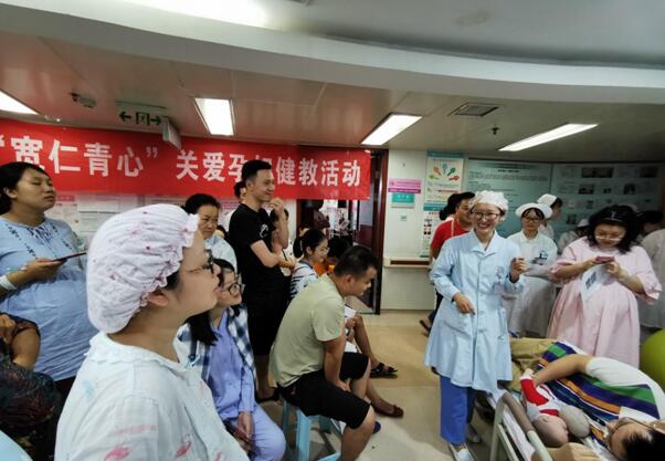 为进一步扎实开展青年文明号创建工作,引导和激励我科青年立足本职岗位,提高服务水平,改善孕产妇及婴儿保健状况,提高产妇母乳喂养率,8月8日,根据院团委青年文明号工作方案,重庆市青春倡廉示范岗暨市青年文明号创建集体--重医附二院产科举办了“宽仁青心”关爱孕产妇健教活动。健教活动由号长朱启坤护师向病房里的孕产妇送上了一堂精彩的《母乳喂养》为专题的公休会,吸引了病房里面五十多名孕妈奶爸以及家属的参加。
