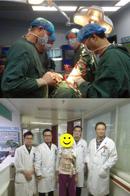 令人惊讶的是,除开巨大肿瘤外,黄女士的胸12椎体已被肿瘤极度侵蚀,脊柱在胸12椎体处呈现出严重的后凸畸形,稳定性极差,且肿瘤亦向椎管内生长,脊髓受压明显。如若任其发展,脊髓将进一步受压,或者由于椎体失稳而造成脊髓的横贯性损伤,后果极其严重,需限期手术治疗。
