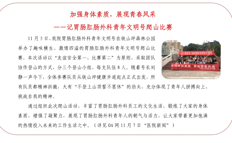 加强身体素质,展现青春风采——记胃肠肛肠外科青年文明号爬山比赛