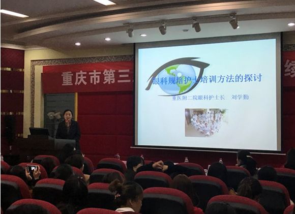 会议由重庆市护理协会眼科专委会主办,重庆医科大学附属第二医院眼科协办。中华护理学会重庆分会眼科专委会副主任委员兼重医附二院眼科护士长刘学勤主持会议,原三军医大护理教研室主任兼博士生导师张绍蓉、西南医院眼科总护士长王晓蕾、重庆市人民医院中山院区护士长曾繁丽、重医附二院眼科刘丹宁教授等多位专家在会上进行精彩演讲,培训结束时,各参会代表表示获益匪浅。