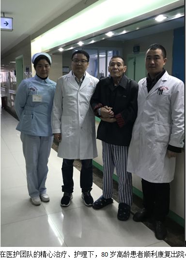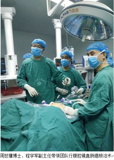 患者男性,80岁,因大便不成形来院就诊。经电子肠镜+病理活检,确诊为直肠腺癌,肿瘤无外侵,无远处转移,有手术切除的条件。目前公认外科手术切除仍然是结直肠癌唯一可能达到治愈的治疗手段。但80岁老年患者,合并有贫血、慢性阻塞性肺疾病等慢性病,手术风险极大。如进行传统手术,手术切口大,组织损伤大,视野显露不佳,操作空间小,而且术后胃肠功能恢复慢,出现粘连性肠梗阻的可能性大,经重医大附二院下派专家胃肠肛肠外科周世骥博士带领的巫溪分院外二科普外团队的综合分析、详细评估,决定为患者实施腹腔镜直肠癌根治术。手术在周世骥博士、程学军副主任带领的团队下顺利完成。术后经严密观察,精心护理,患者顺利恢复。