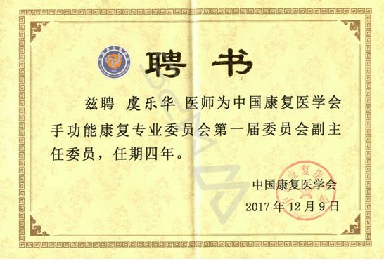 2017年12月9日,2017第一届中国康复医学会年会在北京国家会议中心隆重举行。本次大会有4000余名国内外的康复医学工作者参加。重庆医科大学附属第二医院康复医学科主任/宽仁康复医院副院长虞乐华教授应邀参加了本次大会,并在中国康复医学会手功能康复专业委员会成立大会上当选副主任委员。