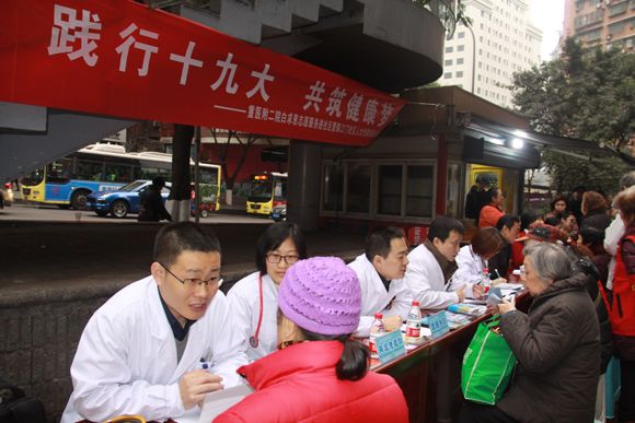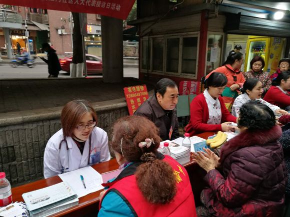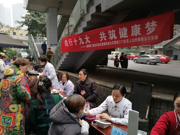 为进一步密切人大代表、政协委员与居民群众的联系,拓宽社情民意渠道,和践行十九大“健康中国”的要求,2017年12月15日,渝中区人大代表、我院党委书记王大刚带领我院医护人员一行十人到联系的临江门社区开展人大代表接访暨义诊活动。