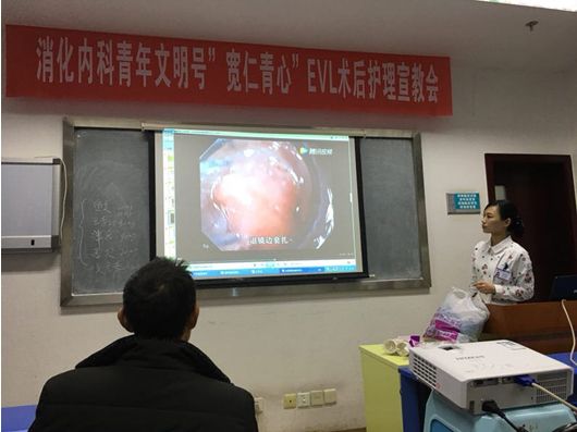 为了进一步提高青年文明号的服务质量,构建和谐医患关系,消化内科青年文明号于2017年12月15日举办了“宽仁青心”食管静脉曲张套扎术后的注意事项的宣教会。