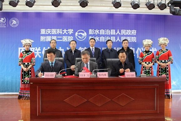 彭水县委副书记、县政府县长石强,副县长王凡鹏,县政协及县卫计委领导,我院院长任红,党委书记、副院长王大刚、副院长邓忠良、彭水县人民医院院长李泽民出席了签字仪式。重医附二院随行的院办等相关职能处室负责人、以及彭水县人民医院党政领导和职工代表参加了签字仪式。