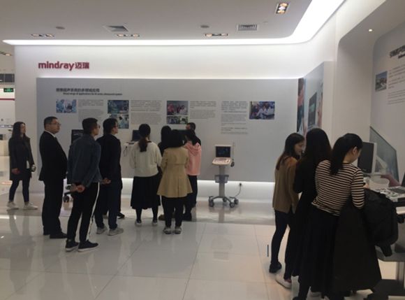 在大众创新万众创业已成为中国国家发展战略的时代背景下,为积极营造学生创新创业氛围,搭建协同育人平台,推进产学研一体化培养。第二临床学院继“启航宽仁”大学生创新创业项目计划实施后,以《医学影像学》市级特色学科建设为契机,于2018年1月启动了第一届“启航宽仁”医学影像学大学生冬令营活动。经过前期组织策划协调推进,2018年1月7—9日,在超声科冉海涛主任、教务处王羽副处长、学生党支部张颖娣书记一起带领2014级医学影像学专业唐心一等10名有科创基础、科研兴趣的同学以冬令营的形式到深圳迈瑞进行了参观、交流和学习。